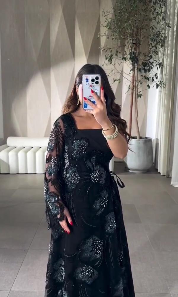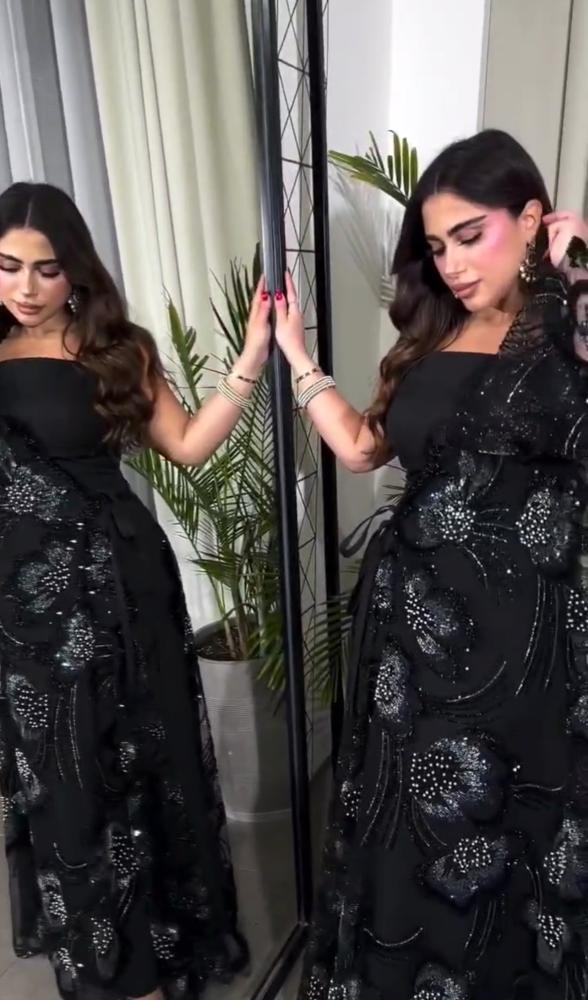 القماش 🧵 : باربي + شال تل مطرز بخرز