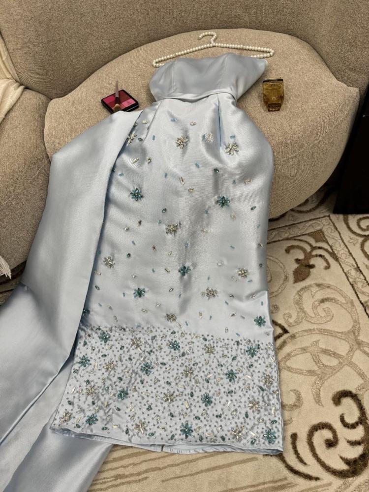 القماش 🧵 : ميكادو اصلي درجه اولى + تطريز كرستال يدوي راقي