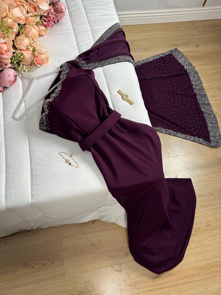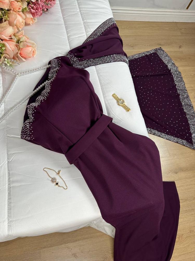 القماش 🧵 : كريب استرتش مبطن +فصوص لون سرفل اصلي راقي