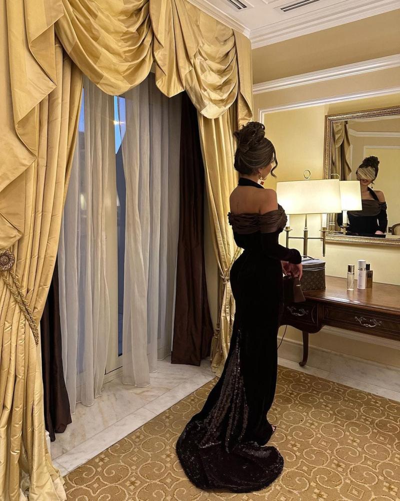 القماش 🧵 : مخمل كوري + ترتر راقي + تفته استرتش