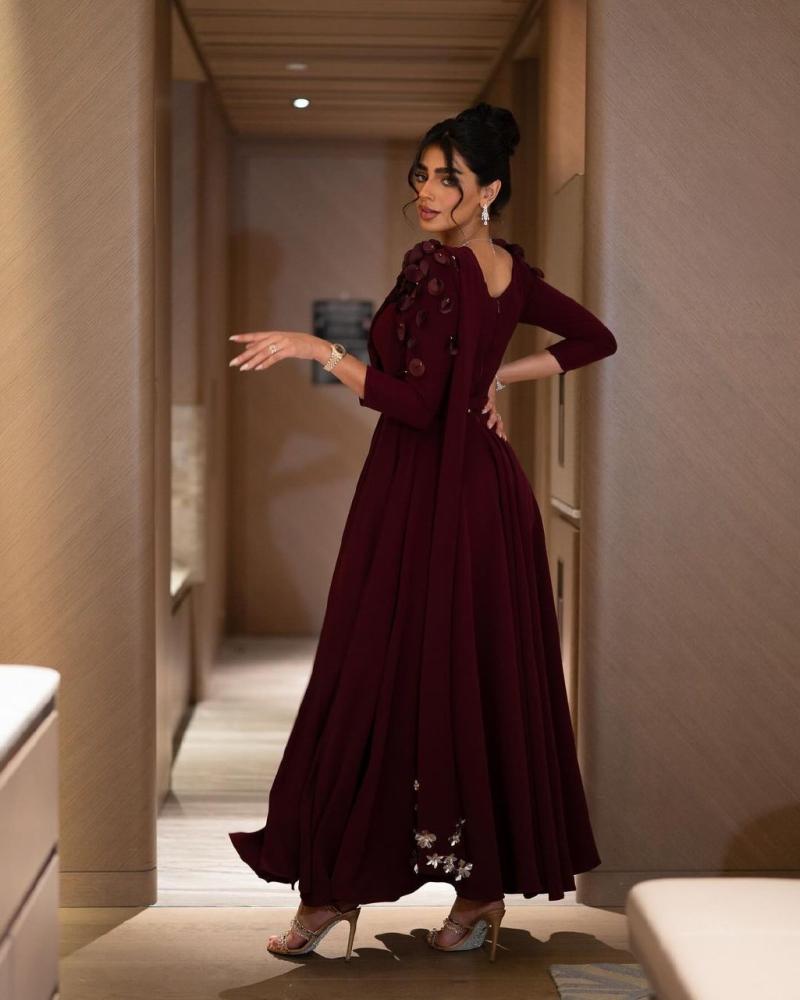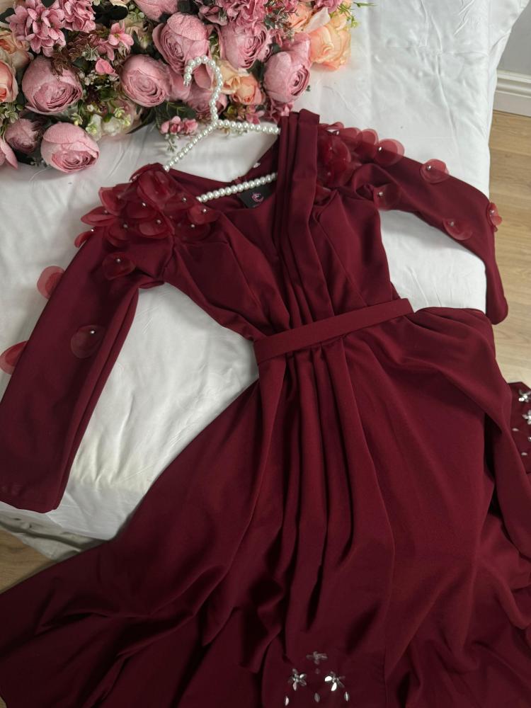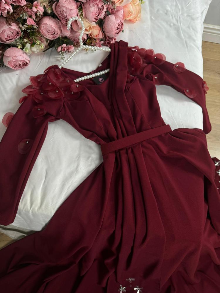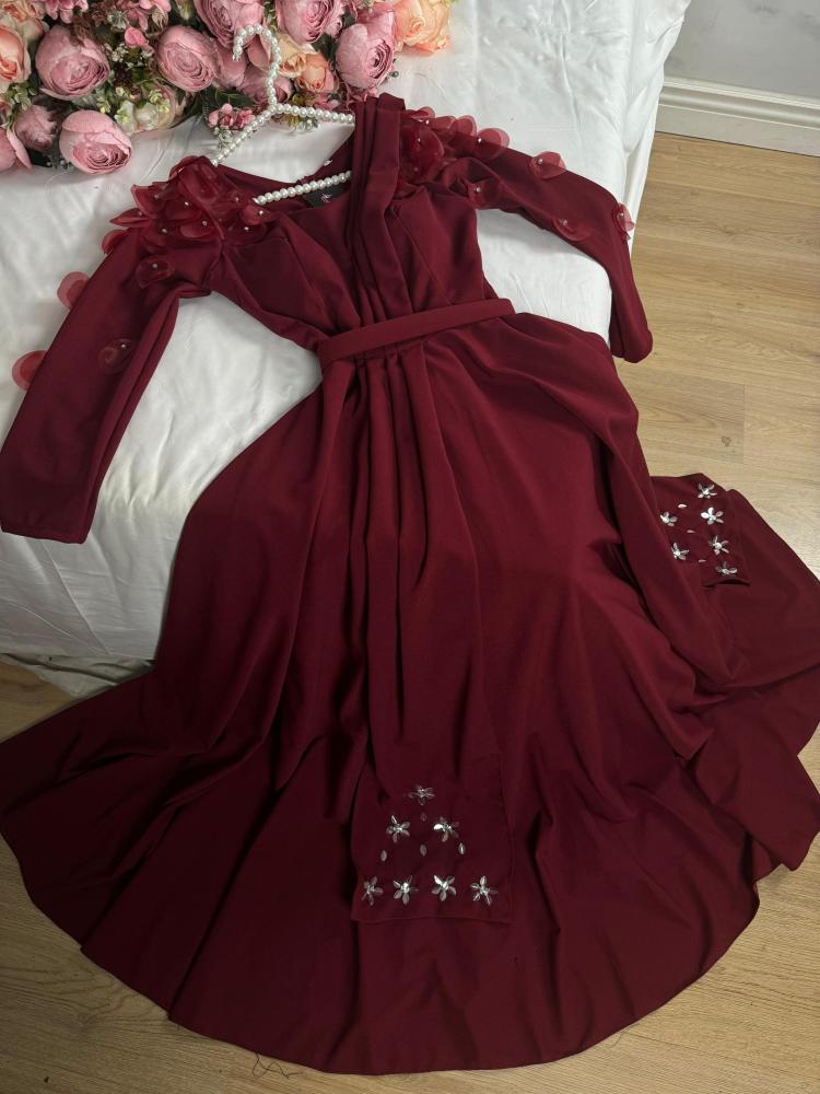 القماش 🧵 : كريب استرتش لكرا + ورود في الكتف + فصوص