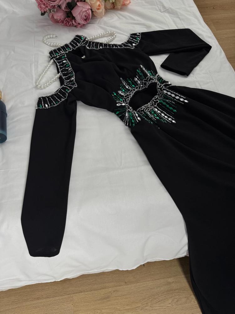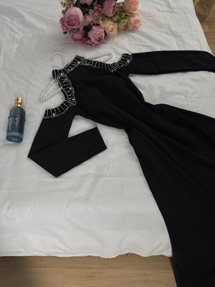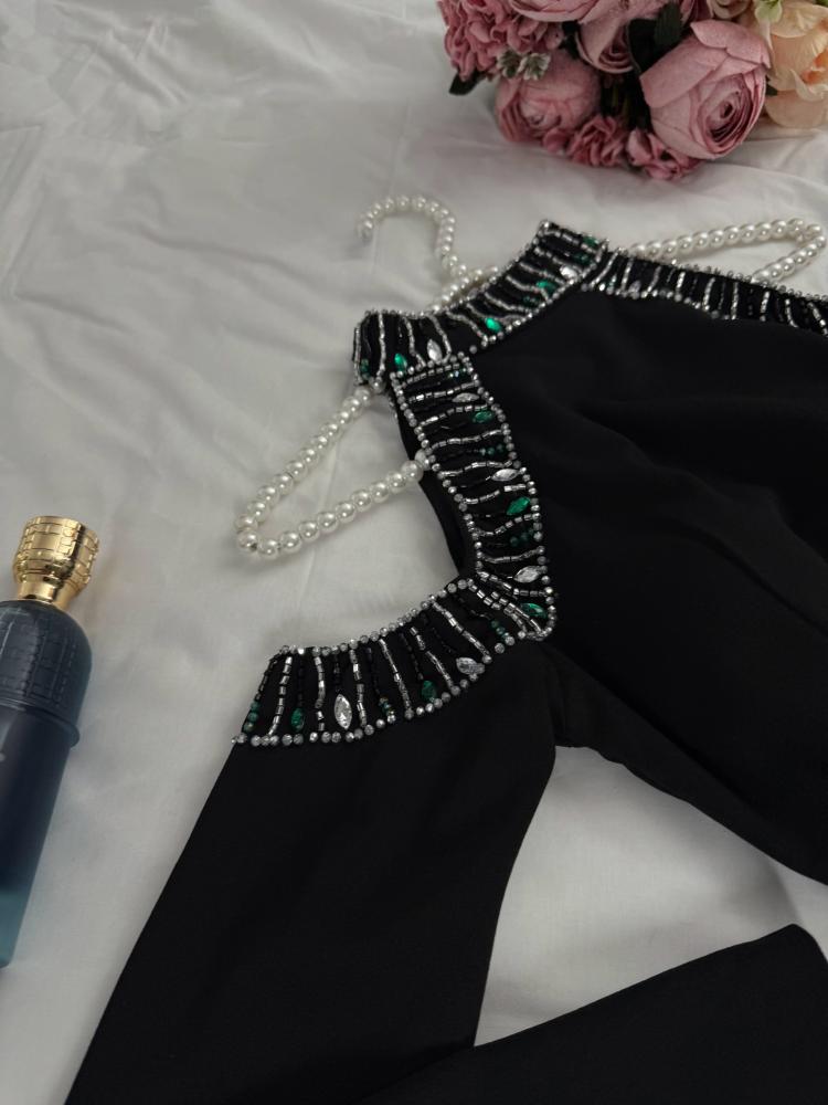 القماش 🧵 : كريب استرتش راقي الاصلي + تطريز يدوي شك بالقماش