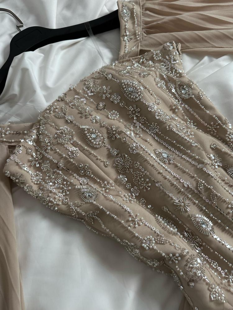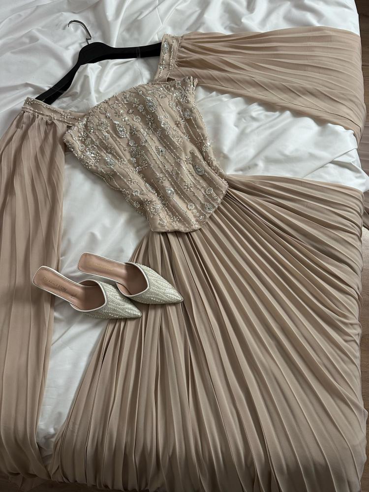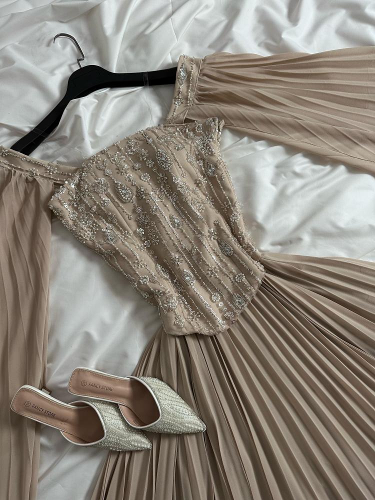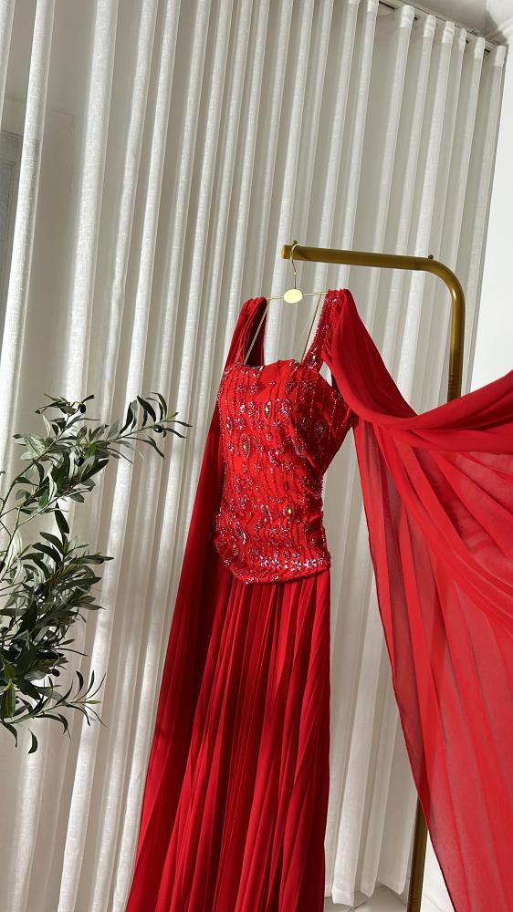 القماش 🧵 : شيفون وخرز + كلوش دبل تحت