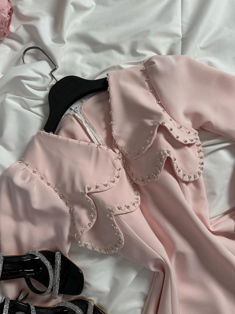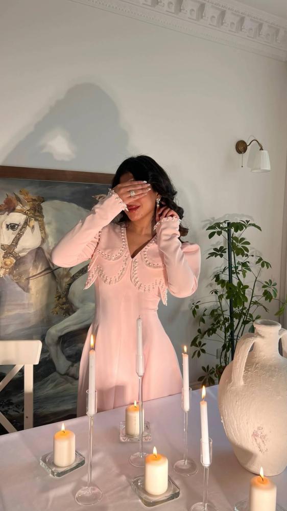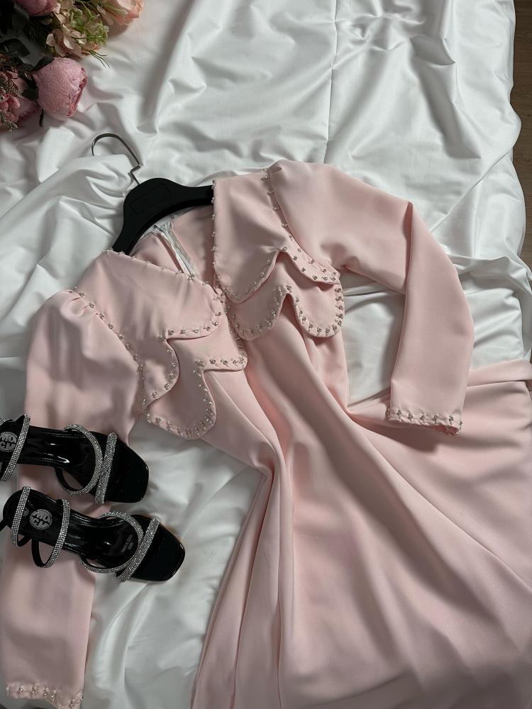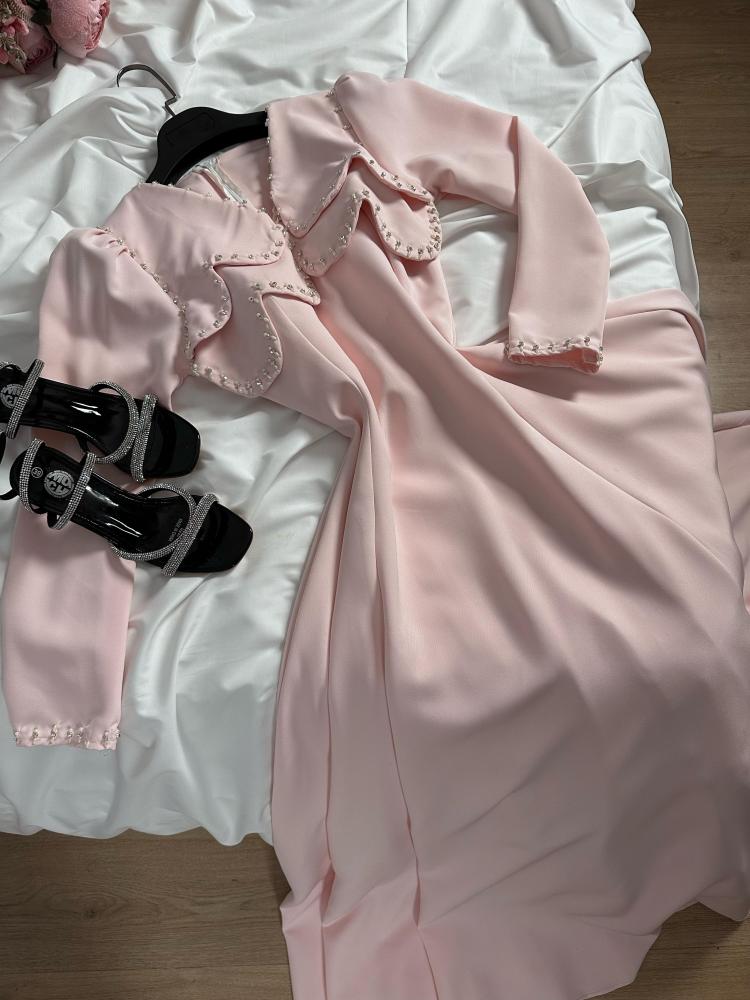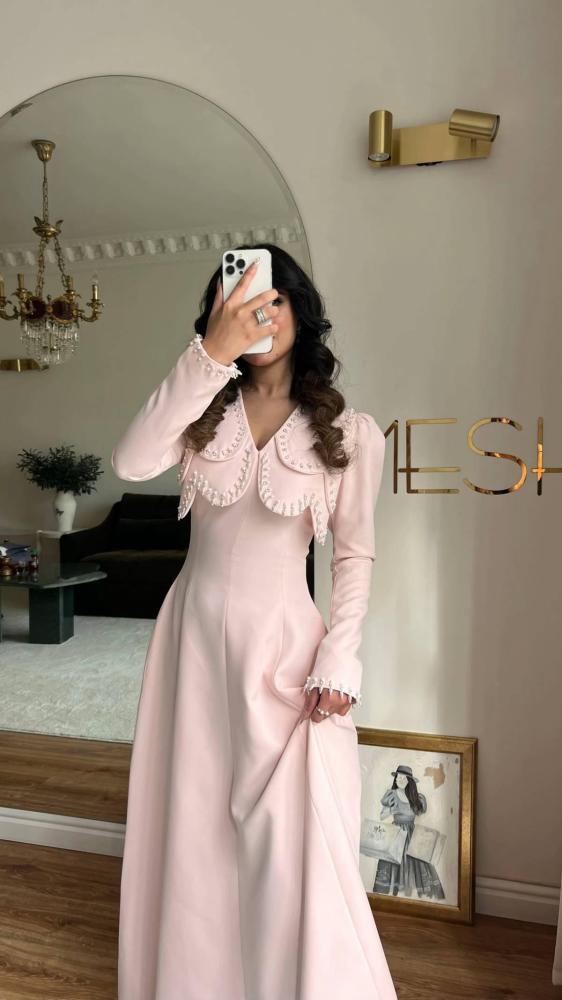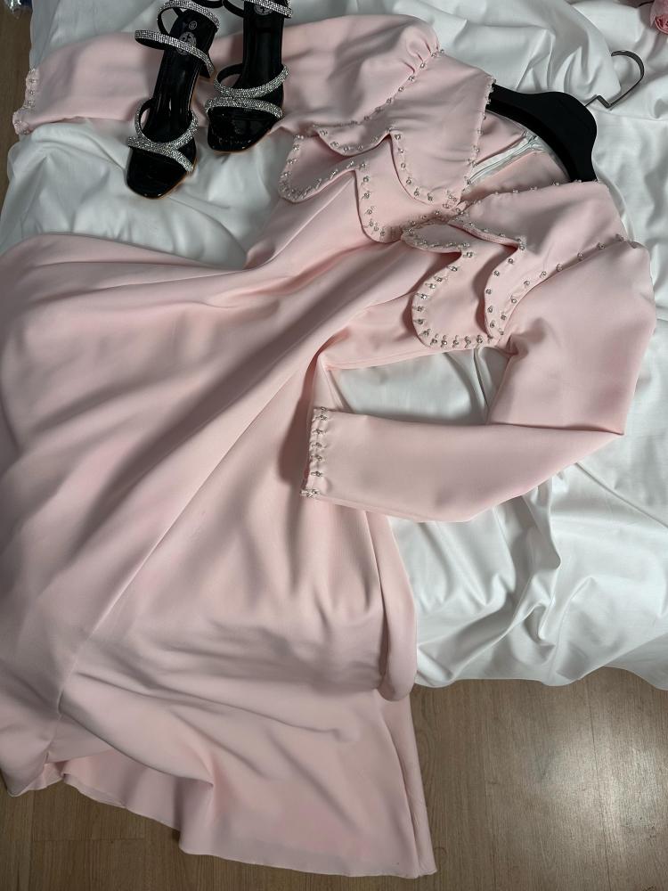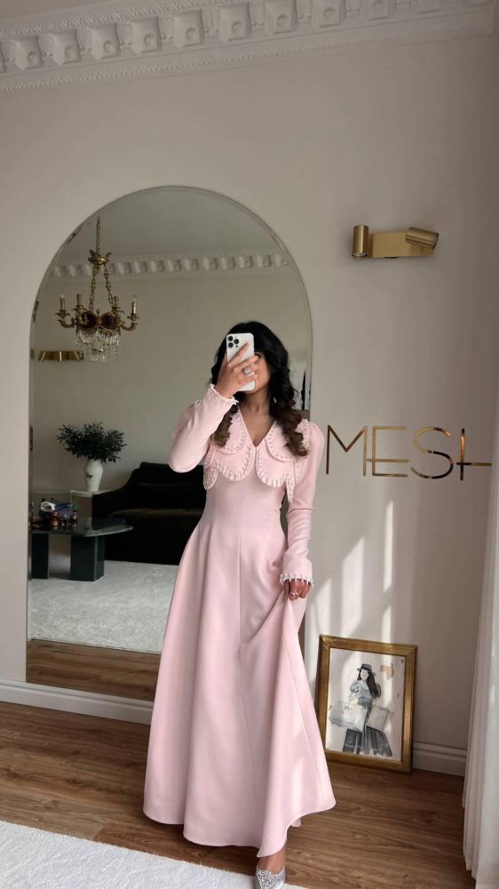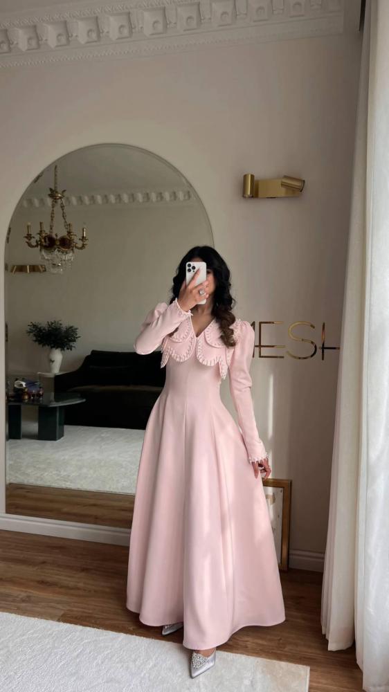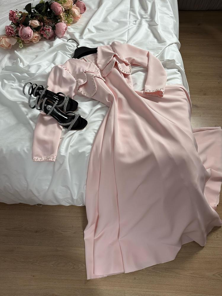 القماش 🧵 : باربي راقي الاصلي ساده كلوش + تطريز يدوي بالقماش نفسه + سحاب اصلي