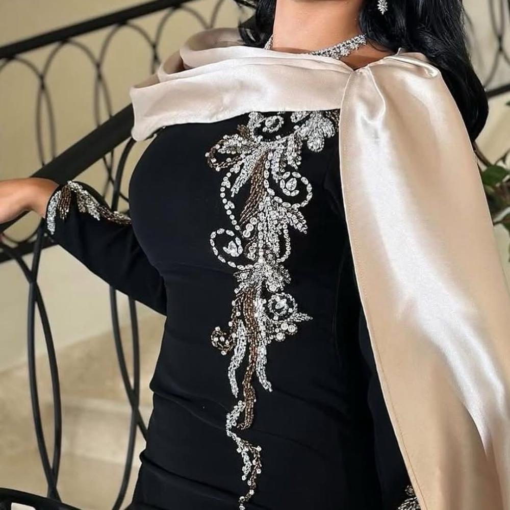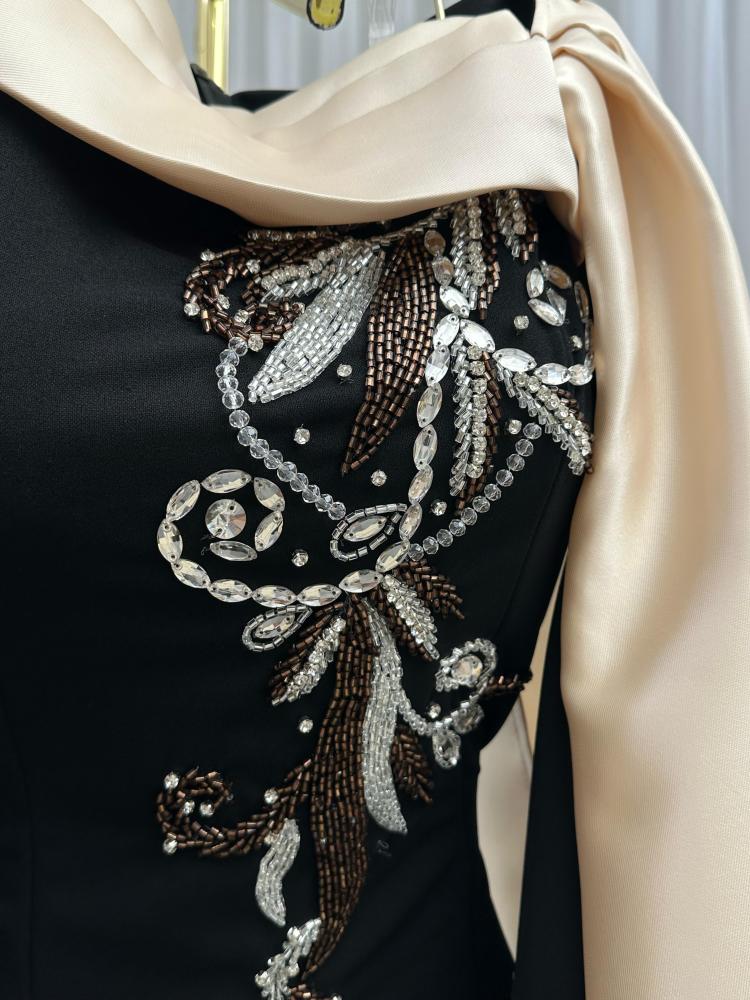 القماش 🧵 : باربي + قصة كتف ميكادو + تطريز خرز بالصدر والاكمام