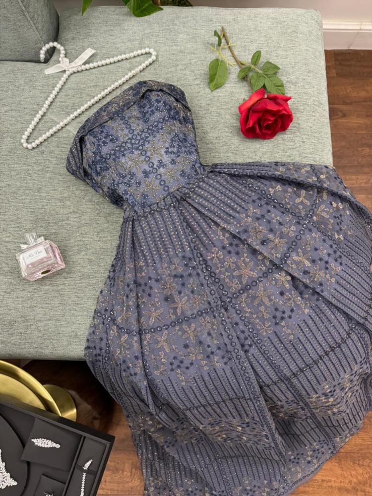 القماش 🧵 : تل + تطريز كمبيوتر + فصوص