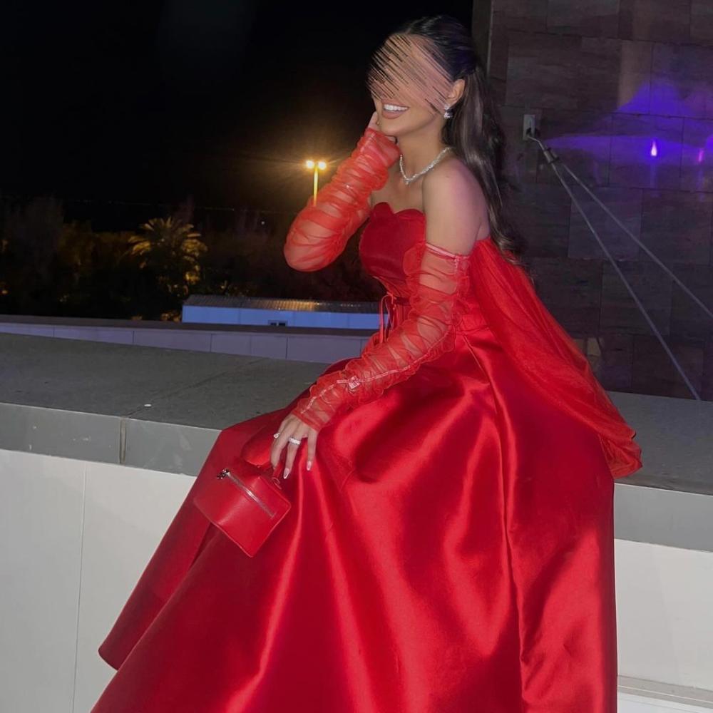 القماش 🧵 : ميكادو راقي الاصلي دبل كلوش + تل +ذيل كلوش + حزام منفصل مبطن جديد