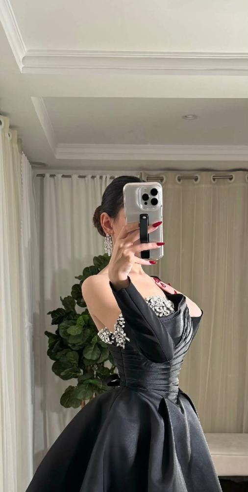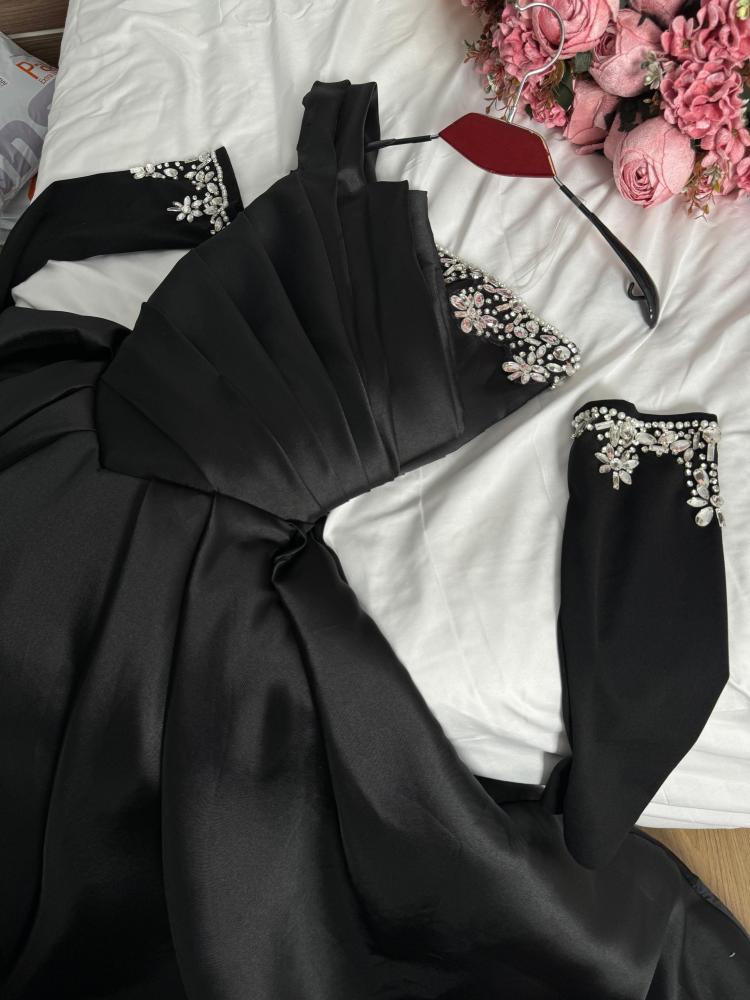 القماش 🧵 : ميكادو راقي اصلي سادة كلوش 6 متر + كم كريب استرتش مطرز كرستال +جيبون