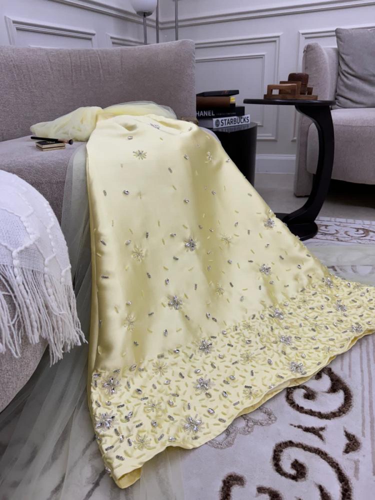 القماش 🧵 : ميكادو درجه اولى تطريز يدوي خرز وكرستال