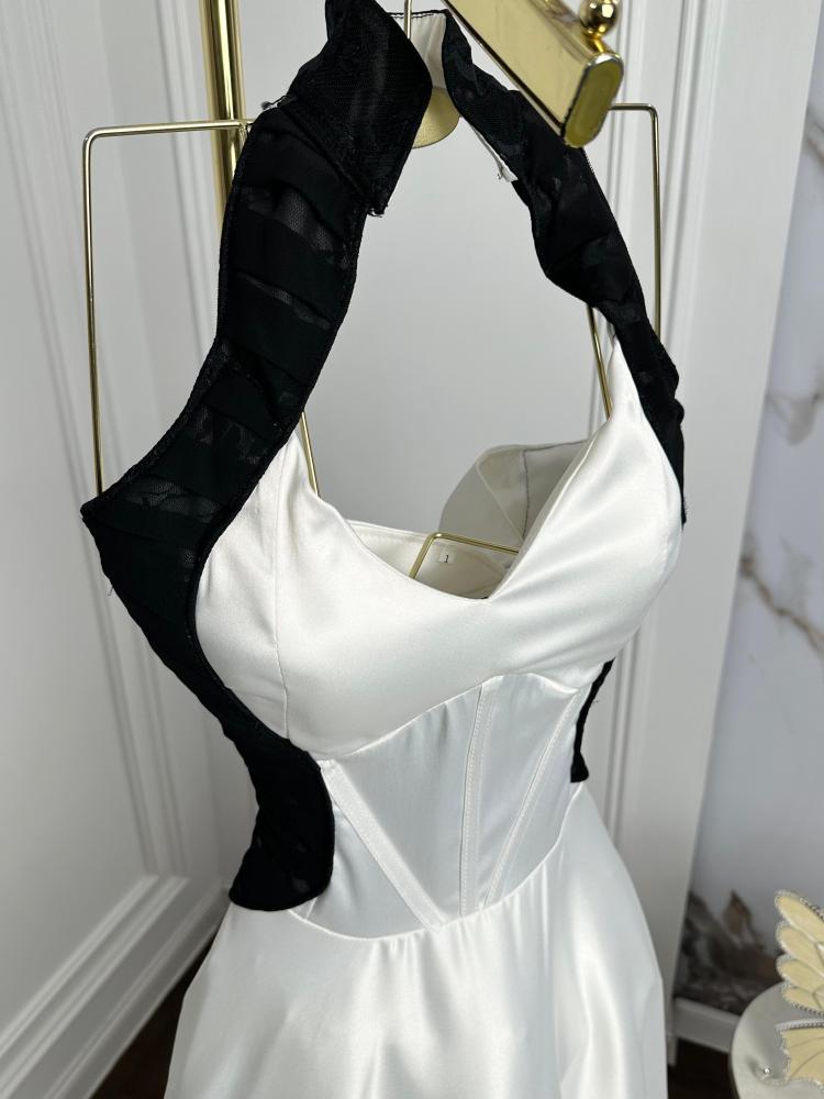 القماش 🧵 : تفته لمعه راقي كلوش 6 متر + مبطن جيبون سهره + شيفون اسود مبطن دانتيل مشجر