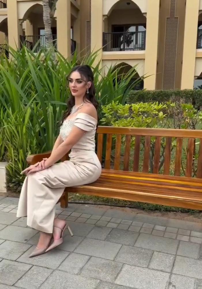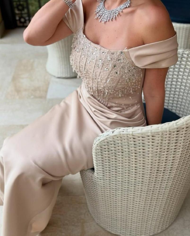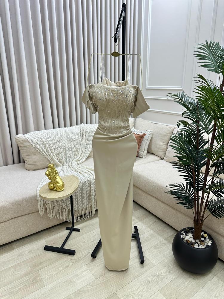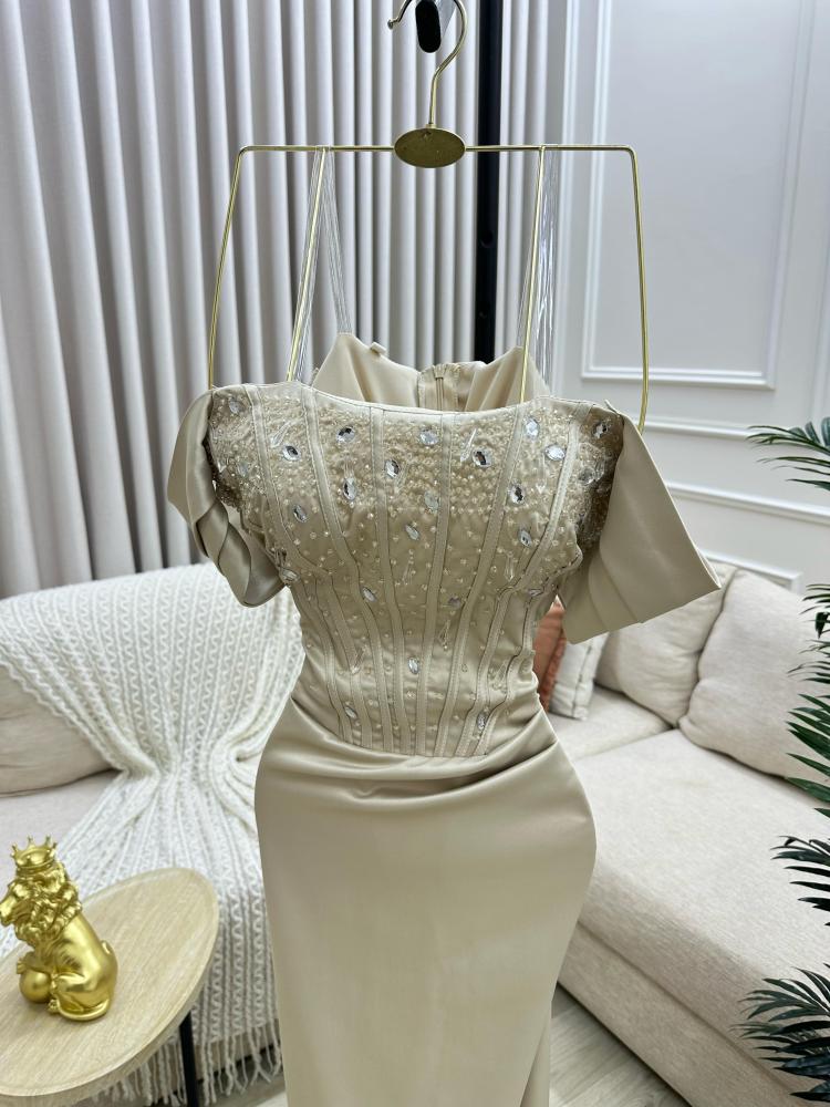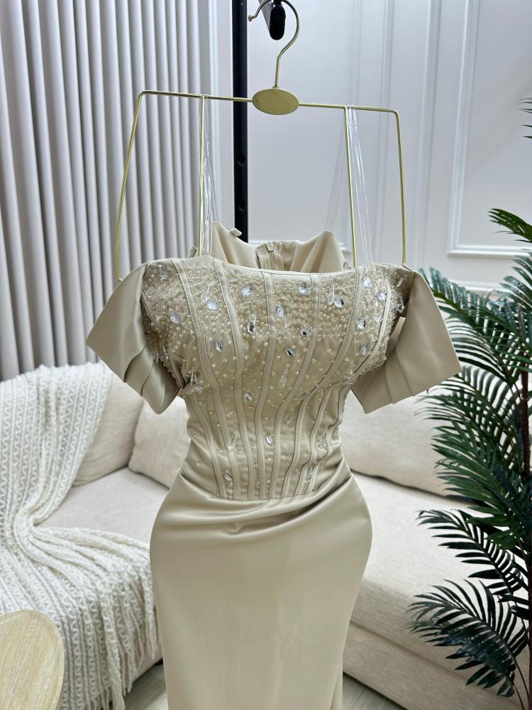 القماش 🧵 : باربي اصلي درجه اولى + تطريز يدوي راقي بلور وكرستال