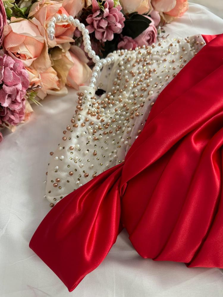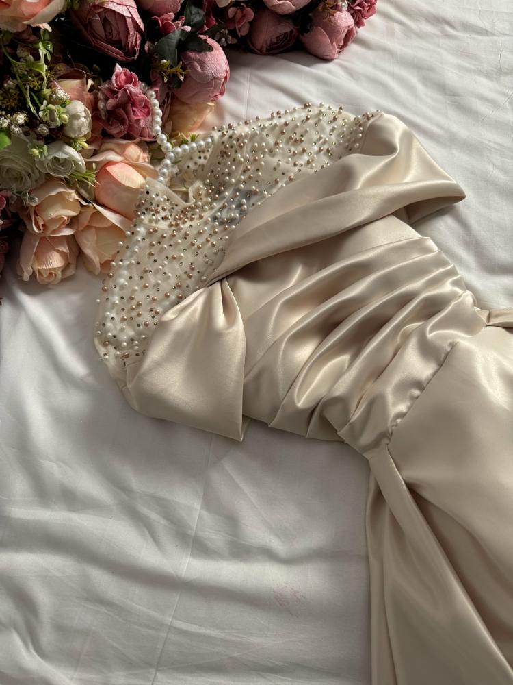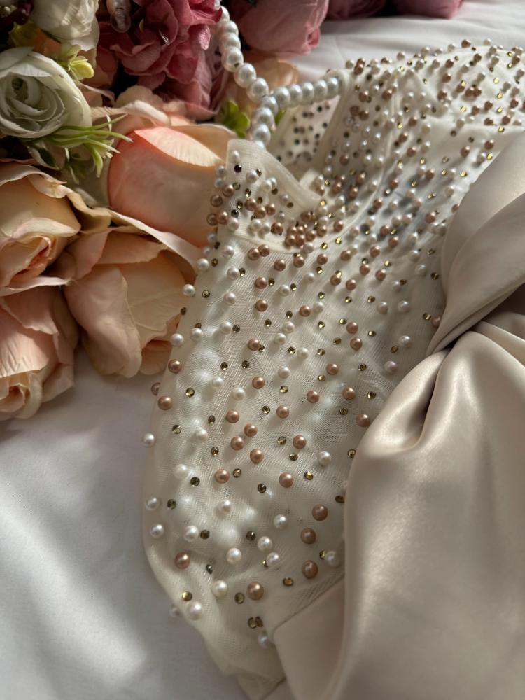 القماش 🧵 : تفته كوري لمعه واقف الاصلي + لولو كبس + فصوص كرستال + جيبون
