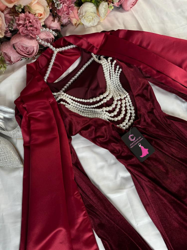 القماش 🧵 : مخمل كوري درجه اولى + شال تفته كوري واقف ذيل طويل + لولو بالظهر