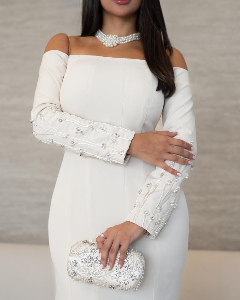 القماش🧵 : باربي كلوش + تطريز يدوي خرز وكرستال