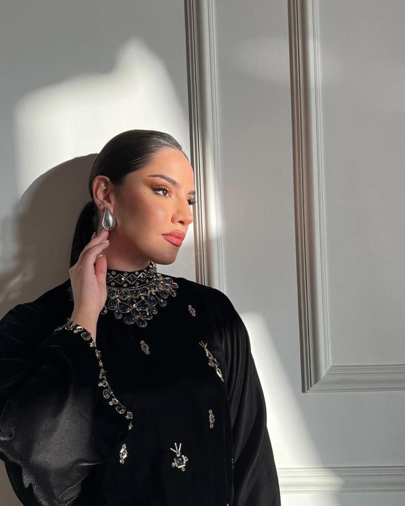 القماش 🧵 : مخمل كوري + خرز وكرستال