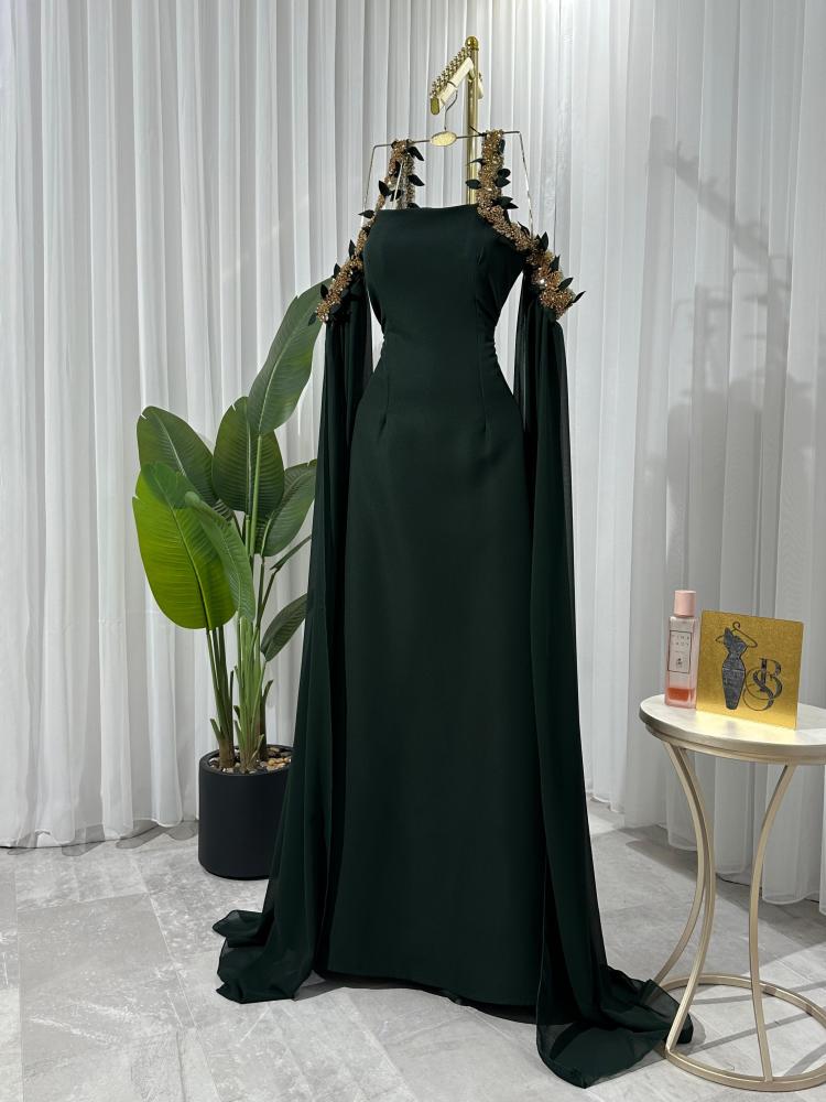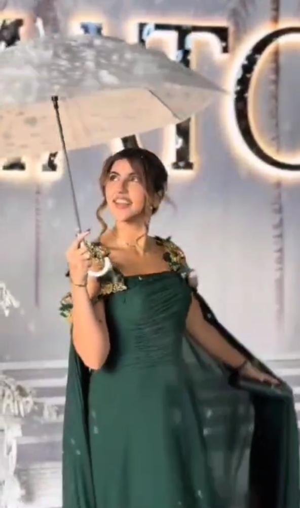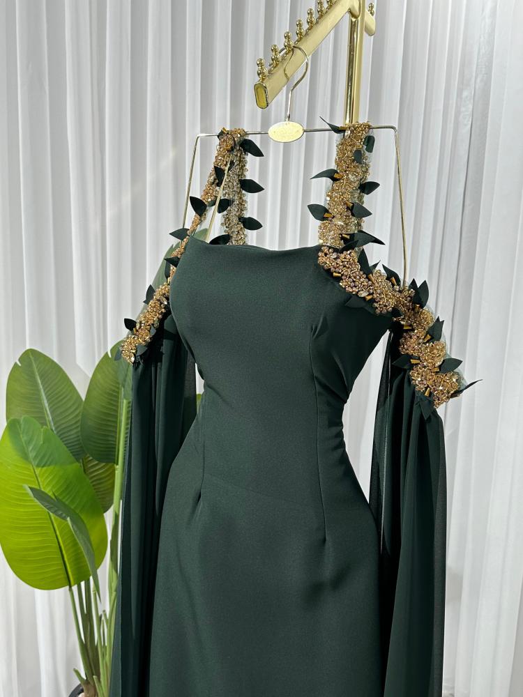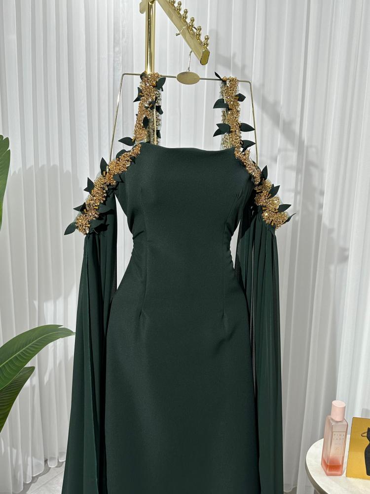 القماش 🧵 : باربي + اكمام شيفون + تطريز يدوي راقي