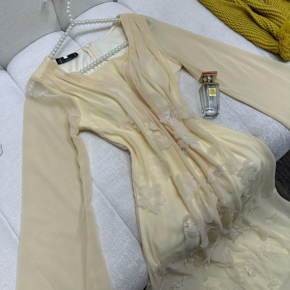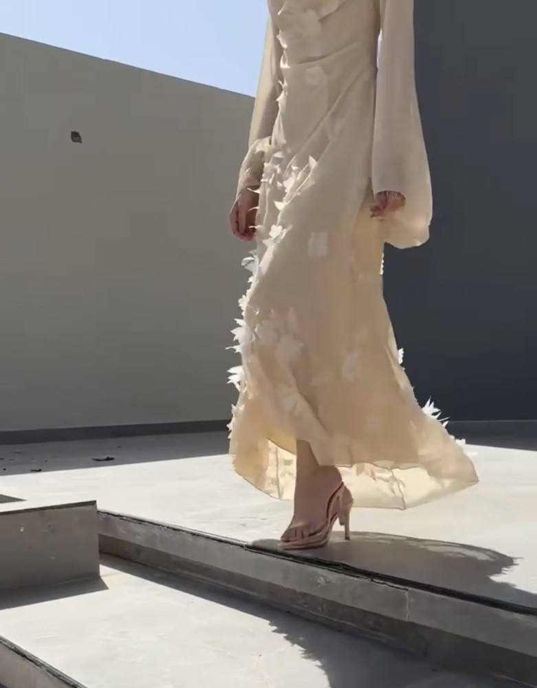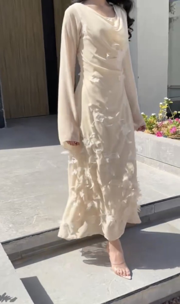 القماش 🧵 : شيفون جورجيت مبطن + تطريز خرز يدوي قصاصات اورجنزا
