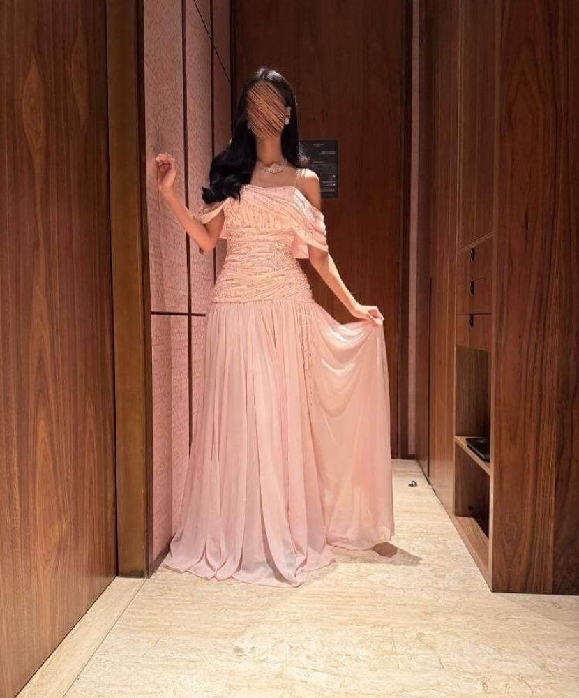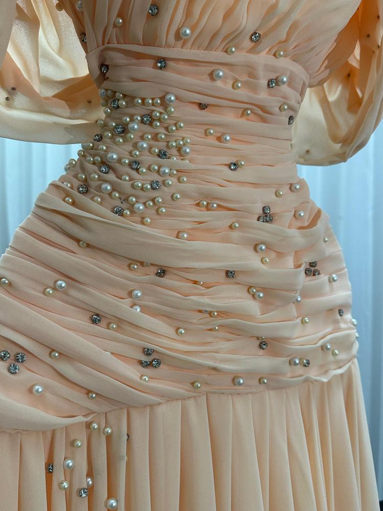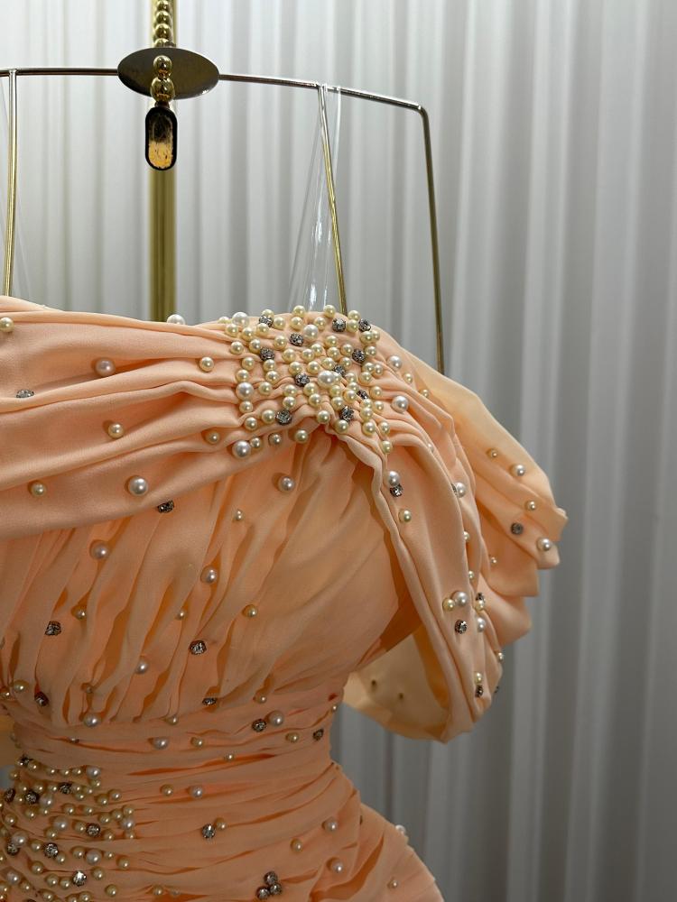 القماش 🧵 : شيفون ناعم راقي + تطريز لولو كبس + كرستال