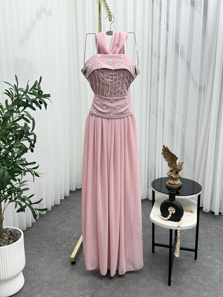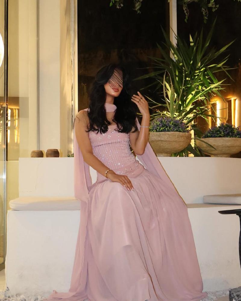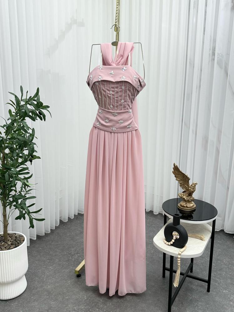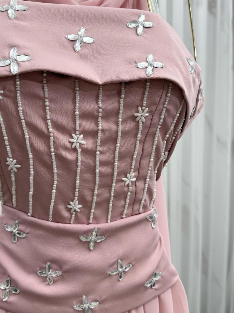 القماش 🧵 : باربي الاصلي + جورجيت + بطانه + تطريز كرستال على لول