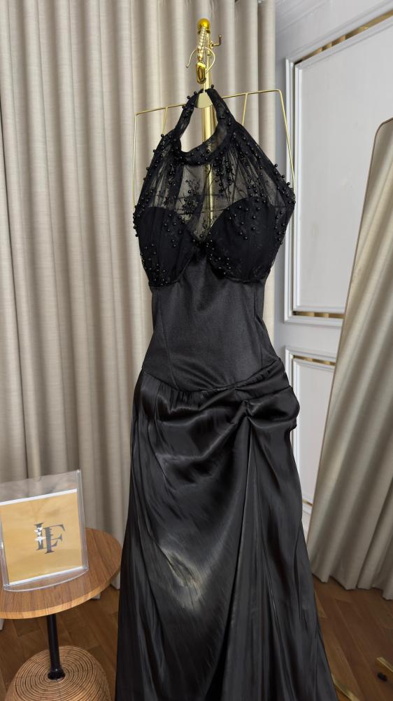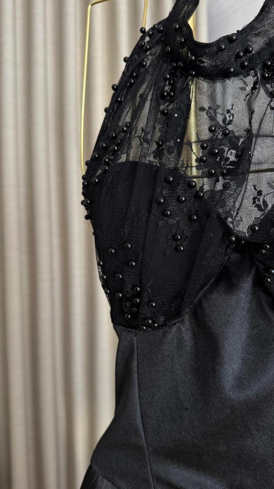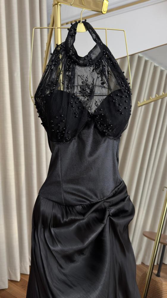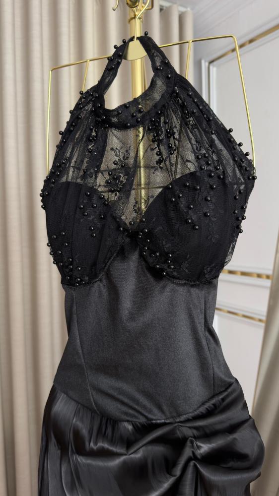 القماش 🧵 : الصدر دانتيل مطرز بلول مخمل كوري على كرنكل