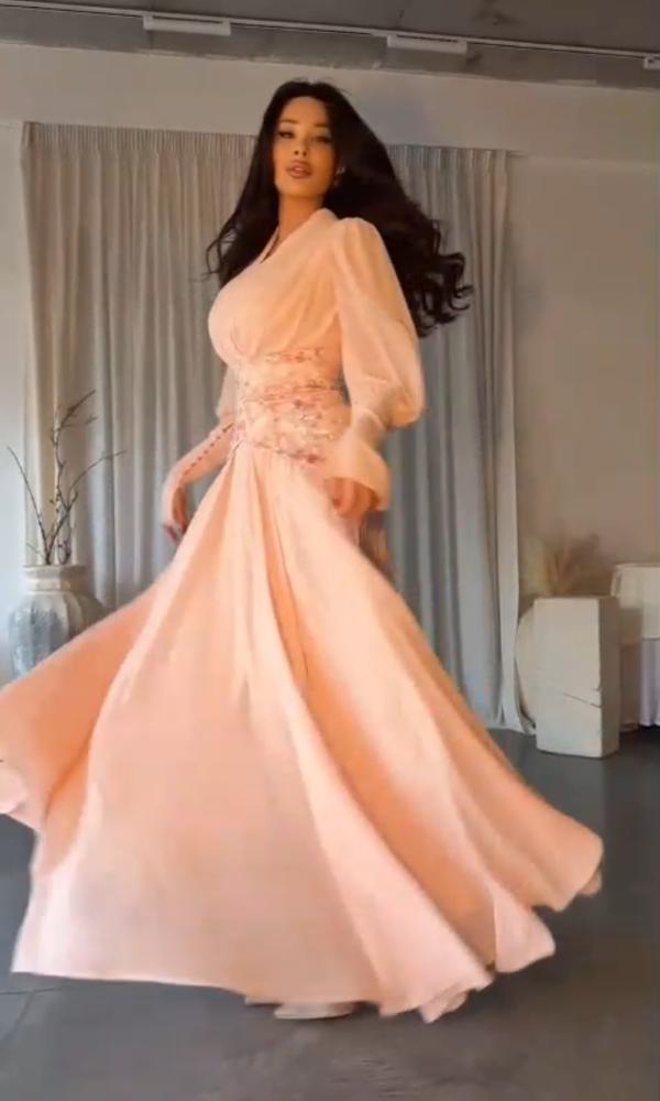 القماش 🧵 : جورجيت + حزام ورد + بطانه