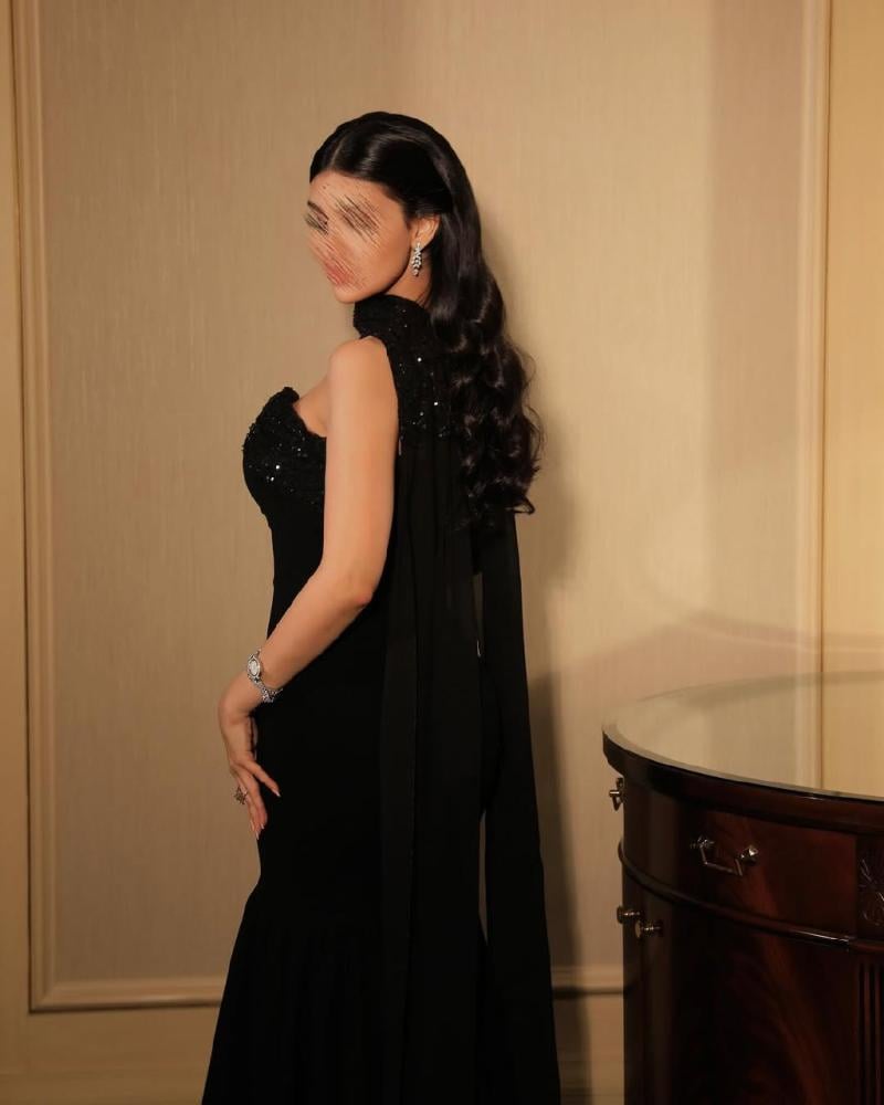 القماش 🧵 : كريب استرتش راقي الاصلي + كلوش دبل اسفل الفستان كسرات + صدر قماش راقي سهره جدا مرتب وانيق